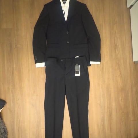 Habitjakke i Slim Fir str 56 (passer en str xl) og hvid skjorte i Slim Fit str xxl (passer en str xl)