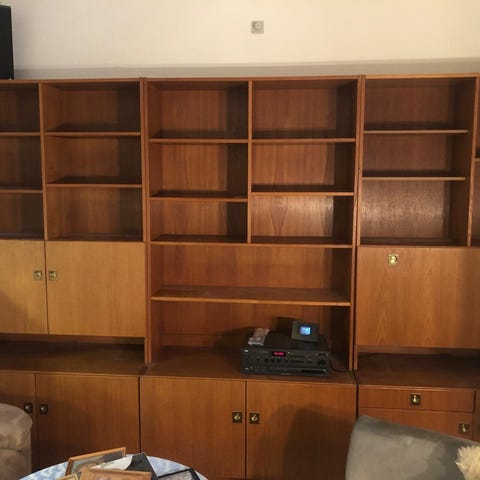 Reol, Retro, b: 95 d: 22 h: 150, Flot reol fra 50'erne med tappede samlinger.
