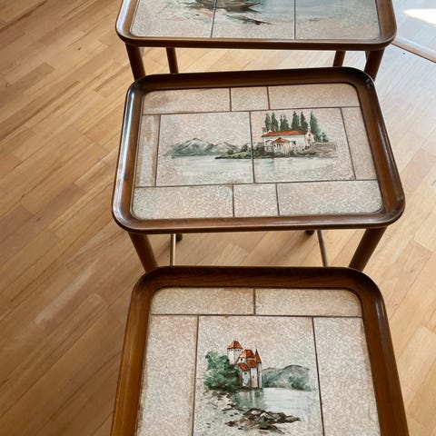 Teak/nød indskudsborde