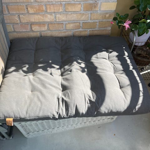 Mørkegråt sæt fra Outsider, som passer til pallemøbler, men kan bruges andre steder. Der er mindre brugsspor, som kan forsøges vasket. Målene er:
