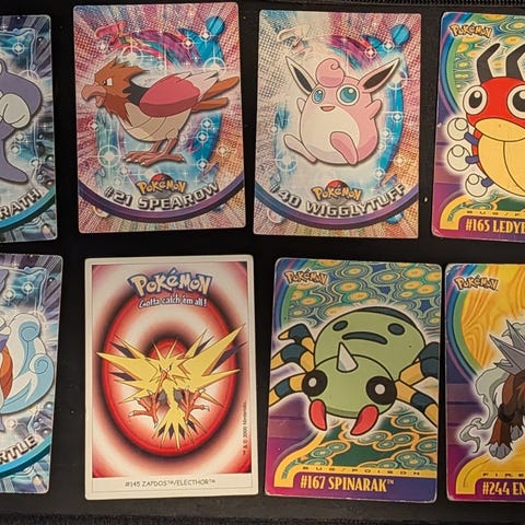 Vaporeon (#134), Farfetch’d (#83), Nidoran♂ (#29) Flot stand – sjældne i denne kvalitet.