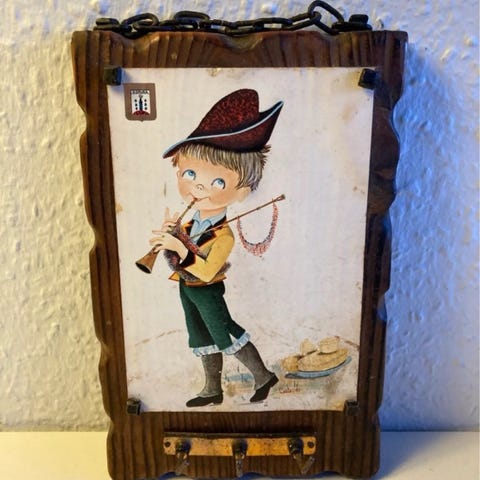 Lille knagerække, 3 kroge, kedel/drageskib, metal, ca. 12,3 x 11,5 cm.