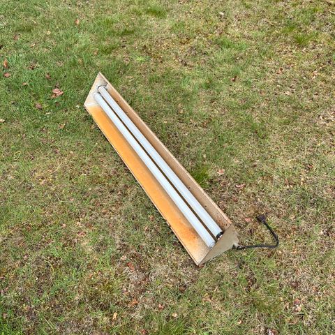 Andet, Industri lampe/ varme lampe. Diameter 48cm. Med porcelæns fatning samt pære. Kan både stå på gulvet og hænge i loftet. Brug den til dyr eller som fed lampe i indretningen. Der kan monteres en almindelig pære i stedet for varmepæren.