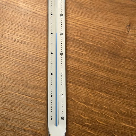 Georg Jensen udendørs-termometer i blankpoleret rustfrit stål. Længde 30cm.