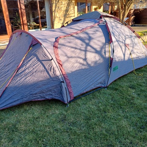 270x130x110. 2 pers. Gulv I hele teltet, vst 3000, vægt ca 3 kg. næsten som nyt.