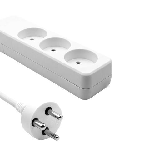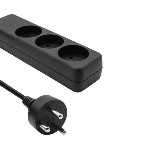 PRIS-MATCH! Dansk 230V 3-stikdåse med jordstik, sort | Standard 3-stikdåse med jord. Kommer med fastmonteret ledning i længder fra 1 til 15 meter.