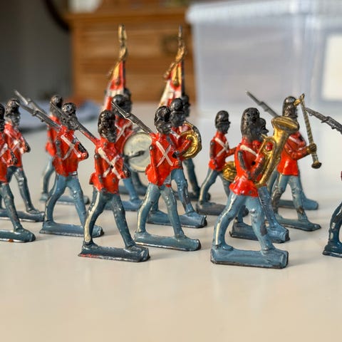 Legetøj, 11 stk Heyde Tinsoldater, 10 med instrumenter