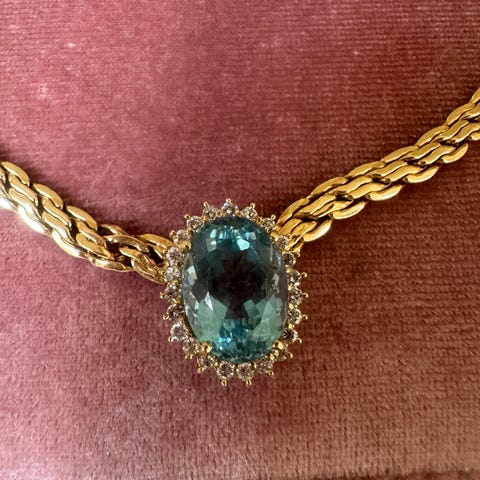 Vedhæng med akvamarin og 14 kt guld