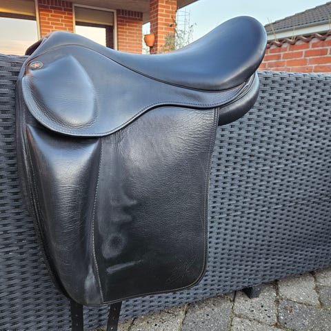 Eques Sella A17”. Stoppet med latex. Der sidder et rød kopfjern i pt. Sadlen er velholdt.