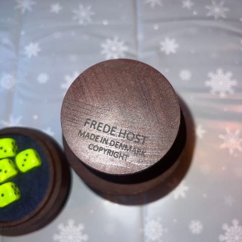 Sæt fra Herstal med 4 raflebægere og terninger.
