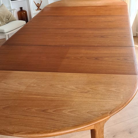 Der medfølger 3 tillægsplader, som hver måler 50 cm. Total længde på bordet er 265 cm