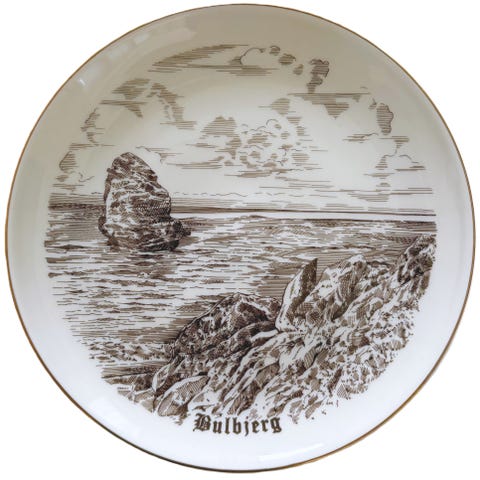 Platten er med brun stregtegning og med guldkant.