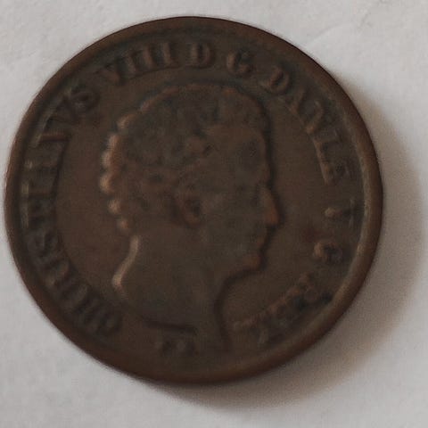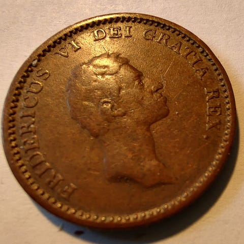 Christian VIII ½ Rigsbankskilling, 1842. Kobber