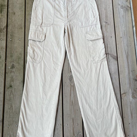 Lyse cargobukser fra Co’couture i 100% polyester. Modellen har store lommer med knap foran, elastik og snøre i taljen samt afslappet pasform med lige ben. Lukkes med knap og lynlås foran.