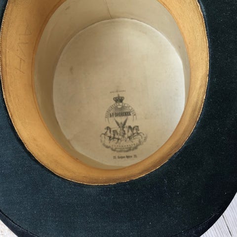 Hat, Cornelius Ottesen, str. 55, Sort, Muldvarpe, God men brugt, Høj hat, har fået et tryk for oven.