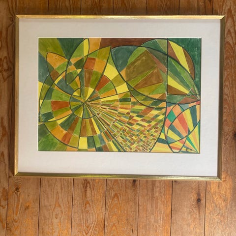 Signeret abstrakt akvarel fra 1998