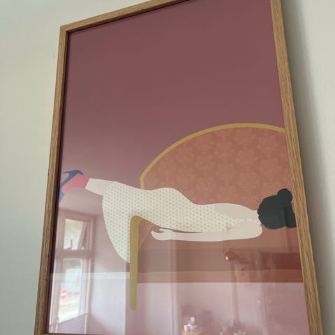 Plakat koster fra ny 849 kr og trærammen 1700 kr ialt 2550 kr Har kun været oppe at hænge i 2 mdr. grundet flytning.