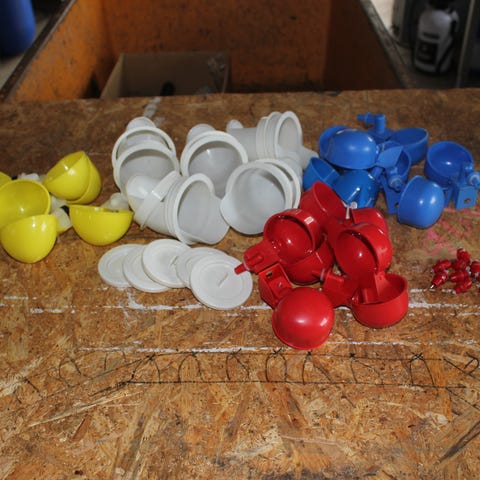 Hønsebriller med tilbehør helt NYE og aldrig været pakket ud /taget i brug. (forhindrer fjerpilleri og kannibalisme samt æg spisning og haner som vil angribe feks andre haner) :