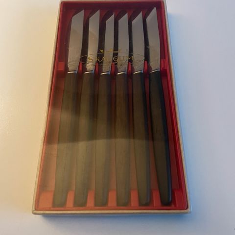 Knivsbladet har slibemærker fra strygestål og gaflen har små hakker fra alm. brug (se fotos).