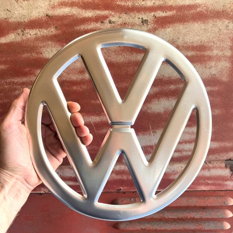 Front emblem i sølvgrå til vw t1. Måler 31cm i diameter.