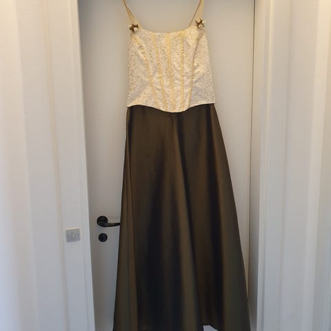 Smuk og elegant selskabskjole i grøn, kun brugt én gang. Kjolen er i meget flot stand.