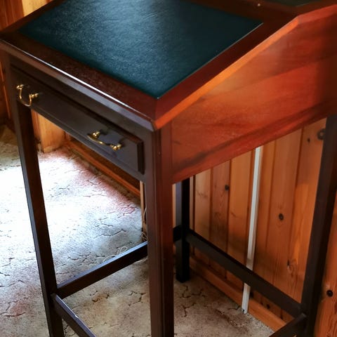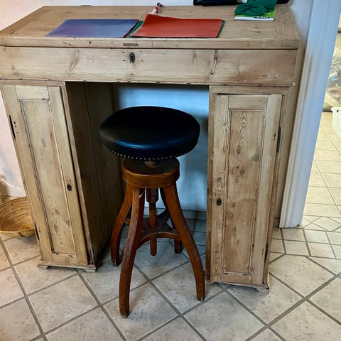 Antik bogholderi Skrivepult & stol med læderpolstring & drejesokkel