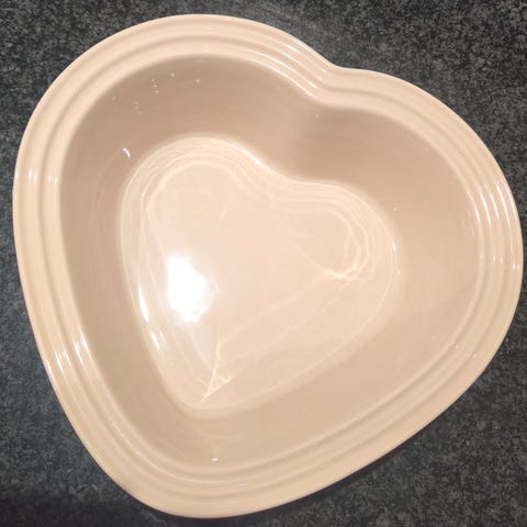le cruset hjerteformet med låg. Skal afhentes.
