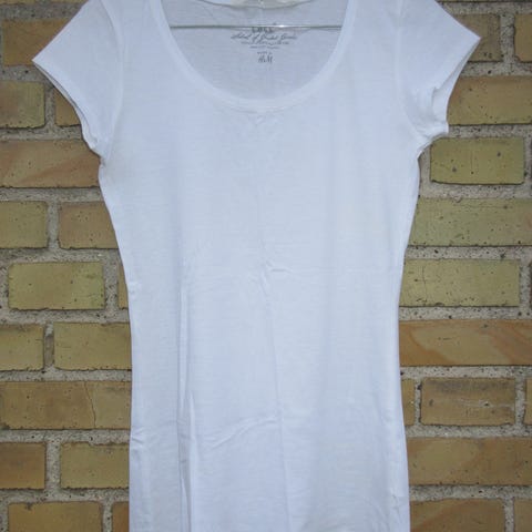 Hvid t shirt fra mærket HogM i størrelse M. En smule forvasket men fejler ikke noget ellers.