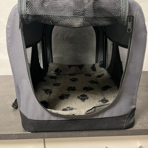 Meget flot solid transportbox fra mærket Anione til hund eller kat . Brugt kun 1 gang er ikke brugt siden . Fejler absolut intet . Ren og ny …. Til lille hund eller stor kat .nypris hos maxi zoo op til 369 kr kan hentes i Hvidovre.