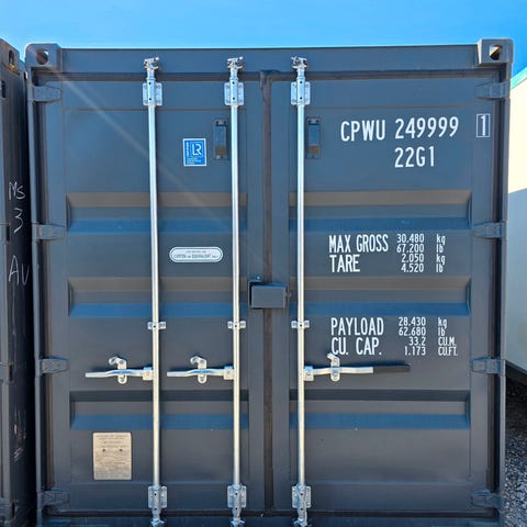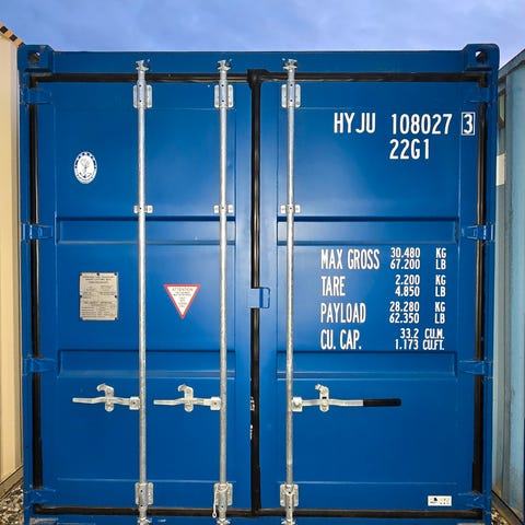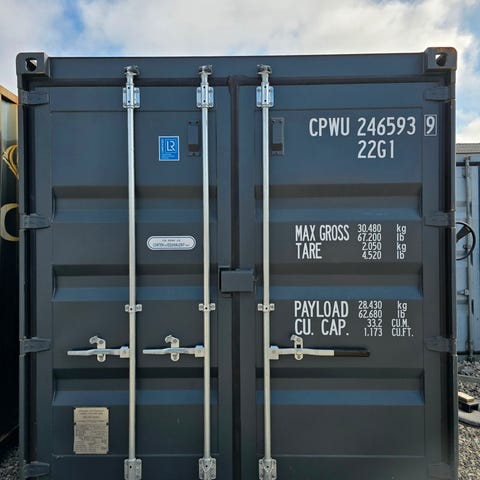 1 stk. isoleret 20 fods container lavet til kunde der skal have den stående i haven, derfor har vi monteret en CC bom, for at holde de værste drengestreger væk.