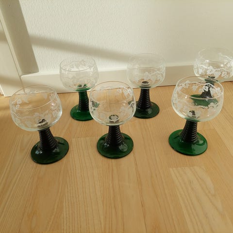 4 Rømerglas h=18,5 god stand + 3 Rømerglas 15,5cm med små skader , sælges samlet .