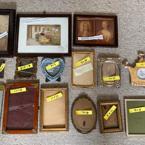 Billed rammer med krystaller 4 stk. Der mangler en krystal på en af dem.