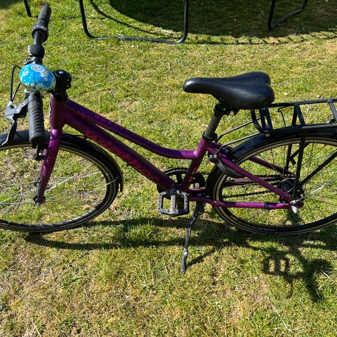 Sort Winther børnecykel, 24 tommer, 7 gear. Med godkendt lås, for- og baglygte samt ringeklokke, støtteben og reflekser. Uhyre lidt brugt. Kører som fabriksny.