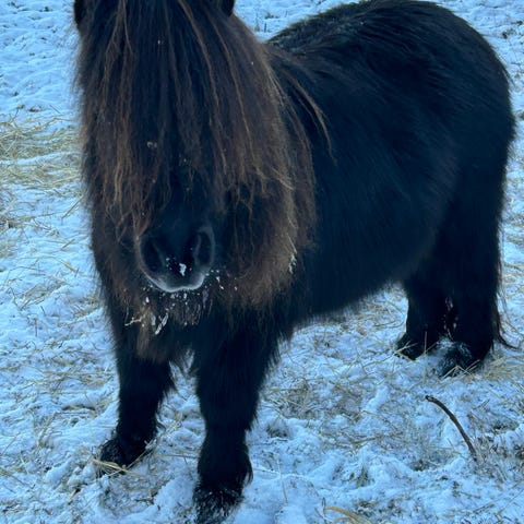 Sød og nem I alt håndtering, hun kan spryes og tørres osv, hun har lige haft smed og står pænt. Hun er trailer trænet. kommet altid og hilser på fold og er meget snaksaglig, hun viser tydeligt brunst, hvis man ønsket at lave føl, hun har rødt pas med stamtavle.