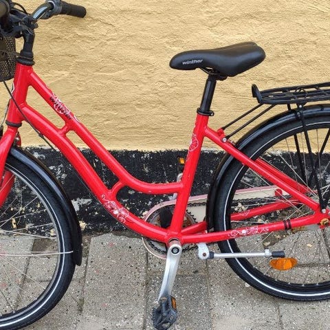 Raleigh, 24 tommer, 7 gear, børnecykel. Med godkendt lås, for- og baglygte samt støtteben, ringeklokke, reflekser, kurv og bagagebærer. Uhyre lidt brugt. Kører som fabriksny.