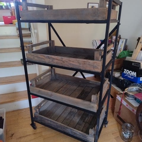 Kære " Kigger " , skriv mig gerne et sobert bud * Hyldevogn, Hylde trolley, Inventar, Skøn stor hylde vogn på hjul; galvaniseret stål, hylde trolley kan skilles ad ; Super smart industrielt look ; som garderobeskab ,måske til lp plader ? Ældre solid hyldevogn, oprindeligt fra nu nedlagt grønthandler butik ; perfekt til opbevaring; Smart hylde trolley, Højde : 190 - Bredde : 130 - Dybde : 62 cm kan ses & afhentes i Esbjerg Midtby ..