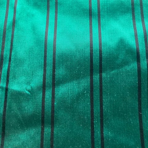 Soda Sole silke stof med påfuglefjer mønster. Lavet af 100% ren silke, dette stof har et farverigt design med påfuglefjer i nuancer af rød, orange og lilla. Velegnet til fremstilling af beklædningsgenstande eller dekorative tekstiler. 150 cm bredt 4,15 lang