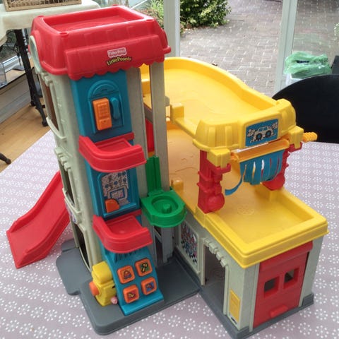 Sjov leg med lys og lyde. Mange funktioner som bilelevator, rampe til at køre bilen ned af, benzinstander mm.