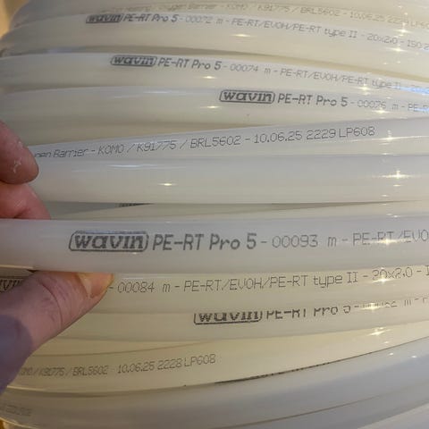 Wavin PE-RT Pro3, der er ca. 35 meter.