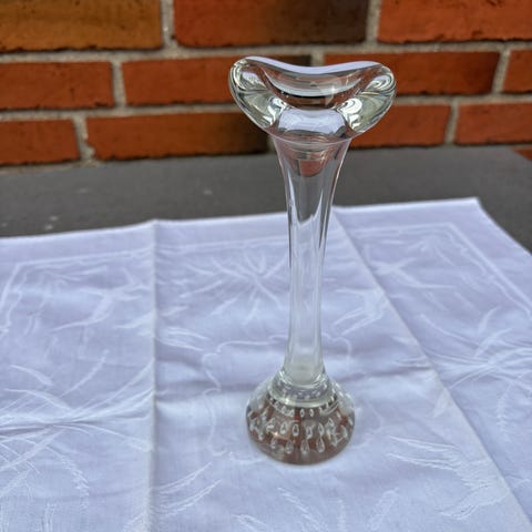 17,2 cm høj. Krystalglas med store bobler i fod. Umærket. God stand, lidt brugsspor, samt en smule produktionsfejl på fod.