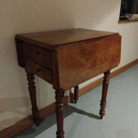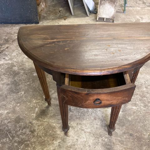 Entré-møbel: Klapbord med skuffe, empire-stil?/ukendt træsort, ca. 67 cm højt, 57 cm bred, 35 cm dyb. Sendes ikke!