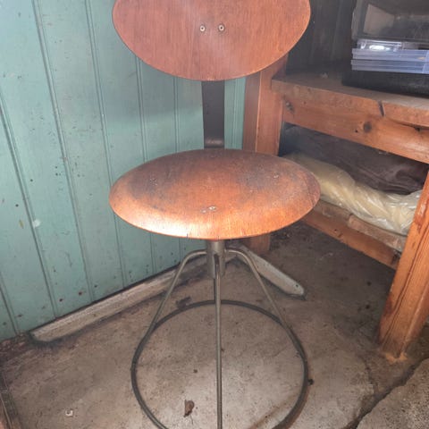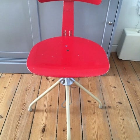 Super skøn vintage, retro industriel kontorstol med hjul med det skønneste patina sælges.