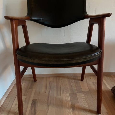 Stolen er i dag betrukket, men kan afmonteres og give stolen et mere råt look.