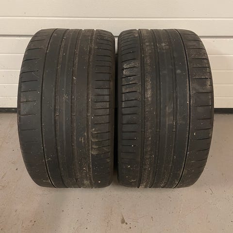 En enkelt dæk har lidt skrab fra kantsten, men er uden betydning.