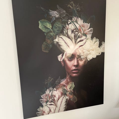 Flower lady lærredstryk 120×120 / for 2 ks sodavand