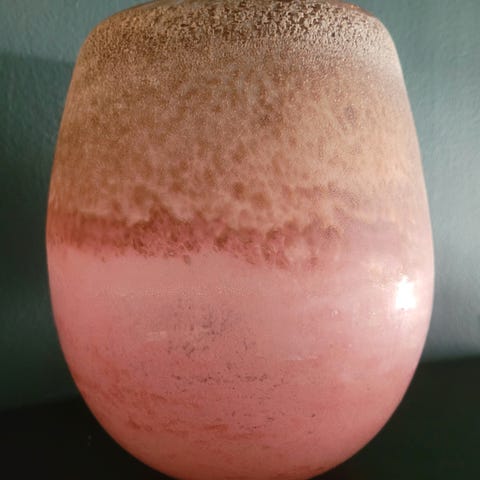 Det ligner en svensk Höganäs vase, vasen er i fin stand og måler 19 cm i højden og 14 cm i bredden.
