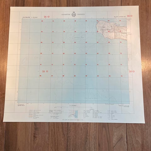 Vægkort fra 1965: Helnæs og omegn (perfekt stand)