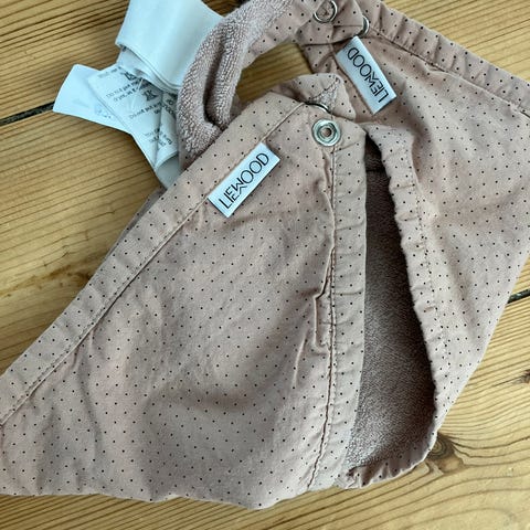 Lækker blå hagesmæk/savlesmæk med trykknaplukning og frotté bagside. Den har en trekantet form, der giver god dækning. Helt ny og ubrugt.