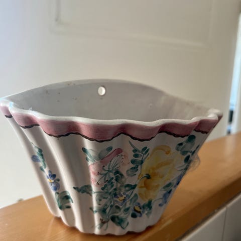 Urtepotte skjuler, Lars Syberg Danmark, lys med blå deco. 19 cm i dia. . 15 cm høj. Ingen skår og revner. Kan evnt. afhentes i Aarhus.