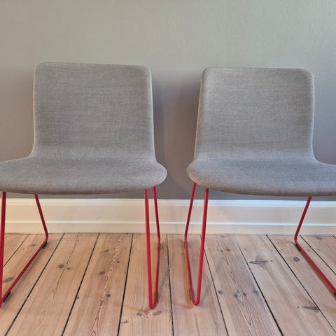 Spisebordsstol, Hård plast , Domitalia Gel B Stacking Chair in Smoke GEL.B., 2 stk spisebordsstole. Stel i lakeret stål. Sæde hård plast i transparent smoke. Sædhynder grå. Købt i Bolia. Sælges kun samlet.